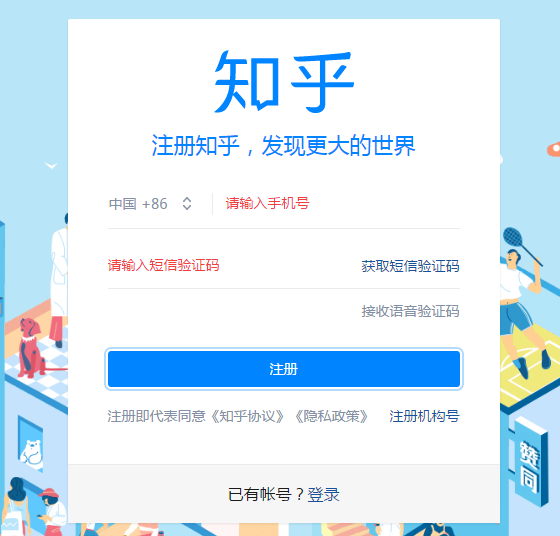 如若没有知乎账号,手机号注册即可。