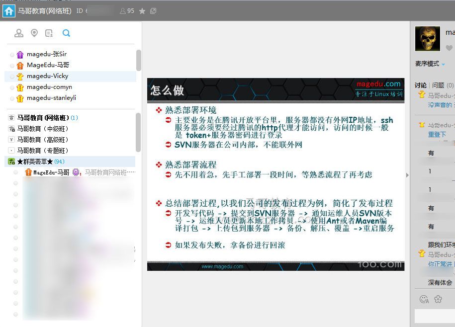 非常感谢雷纳克斯加入“马哥教育YY讲师团”,并为大家带来一场精彩的技术分享。在《从无到有的自建发布系统》主题分享中, 雷纳克斯通过通俗易懂的语言,配合简洁的PPT描述和详细的操作演示,结合SVN和Jenkins实现了完整的代码发布流程,很有参考价值。特发小礼品一份,以资鼓励!视频猛戳:从无到有的构建自己的一个发布系统--雷纳克斯 更多精彩,尽在每周六晚YY在线分享!快来加入马帮学习吧! 马哥教育YY讲师持续征集中,报名联系QQ:1522609717![]()