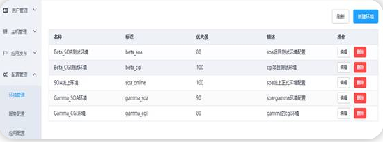 在环境管理会先创建好需要的多套环境,例如beta、线上。