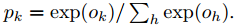 最后一个全连接层F8的输出进入了一个K-way的softmax(K是类别个数),即可产生类别标号的概率分布。用Ok表示一个输入图像经过网络后的第k个输出,即可用下式表达输出类标号k的概率: