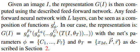 给出图像I,则其特征表达G(I)通过前馈网络计算出来,每一个L层的前馈网络,可以看作是一系列函数: