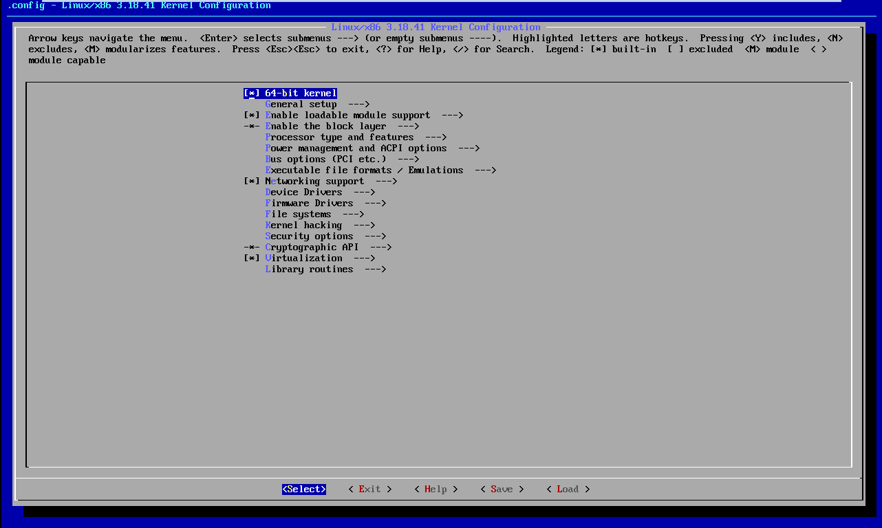 此时我们已经可以正常进入编辑内核选项的图形化界面,在这里我们可以选择我们需要的内核功能