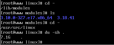 上面的运行完以后,我们可以看见/lib/modules目录下面会多一个3.18.41的内核文件,查看一下该目录,居然有7G多,所以小伙伴们编译的时候注意看一下磁盘的空间容量。