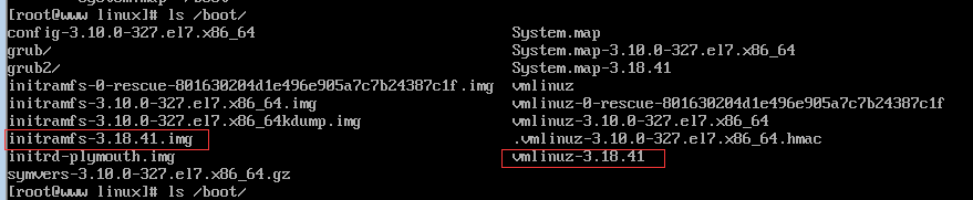 然后会发现/boot目录下面多了内核3.18.41的文件