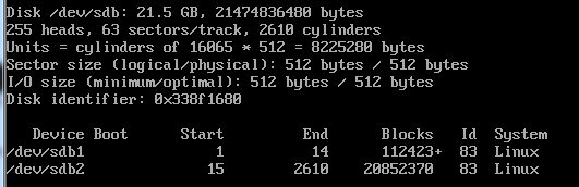 /dev/sdb1对应/boot /dev/sdb2对应根/