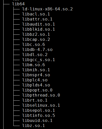复制完可以看见bin和lib64等等目录下面多了许多相关文件