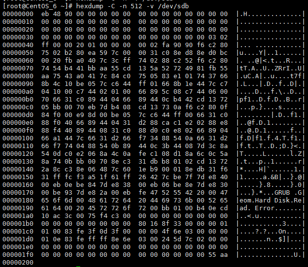 安装完grub以后可以查看一下sdb的mbr信息是否正常