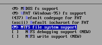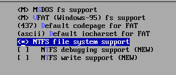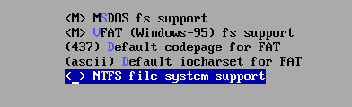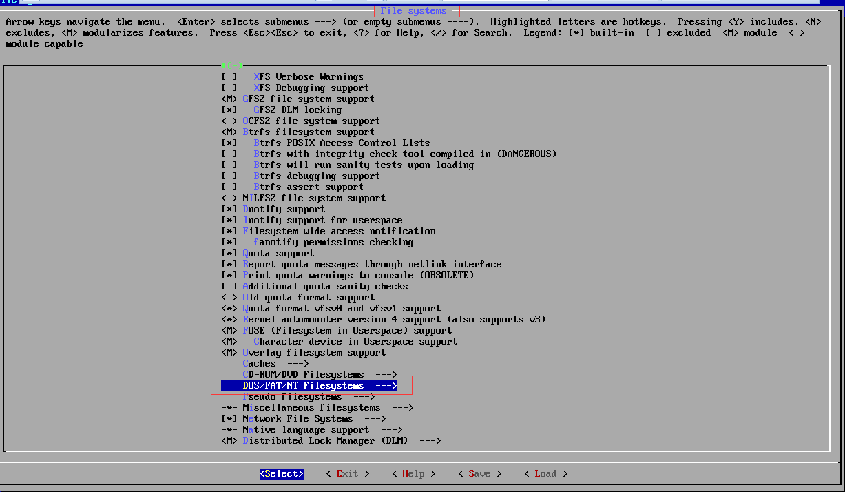 按空格键可以选中此功能,此处的M表示以模块化的方式来安装此文件驱动,这样的话在系统的 modules文件夹里面即可以查找到这个文件