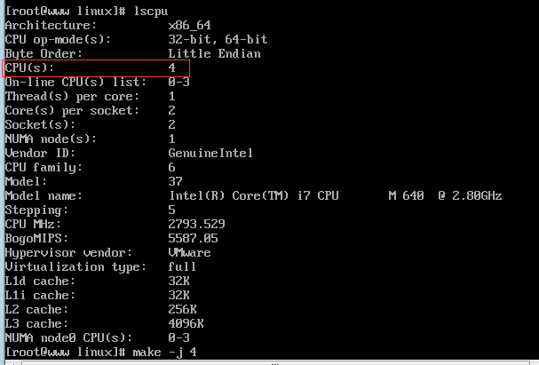 上面的步骤准备好以后,输入make -j 4开始编译,此处的-j 4表示指定cpu的数量,因为我这里核心数量是4,输入完以后,内核就开始编译了,此处需要等待很长的时间