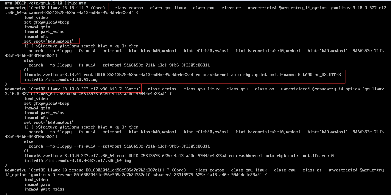 进入/boot/grub2/目录下面查看grub.cfg文件