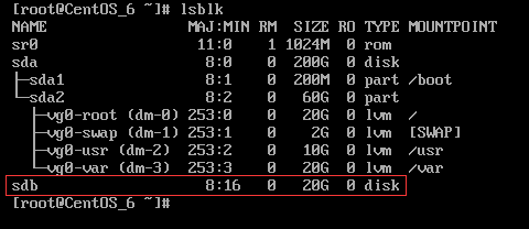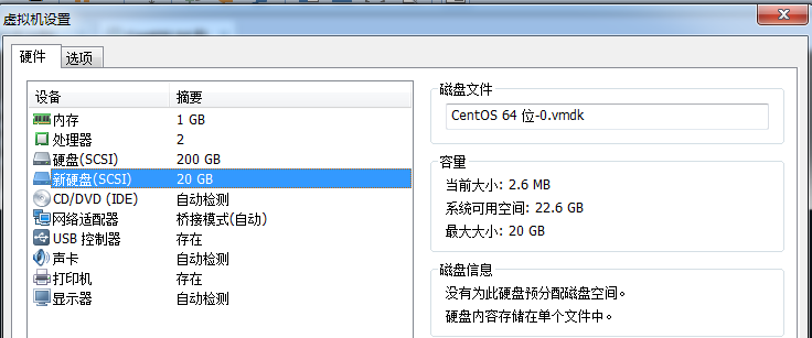 首先准备一个空的磁盘,这里实验使用一个虚拟机的磁盘