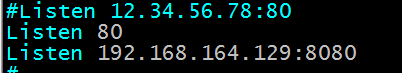 (1) 省略IP表示为0.0.0.0;表示监听本机所有IP;(2) Listen指令可重复出现多次Listen 80Listen 8080(3) 修改监听socket,重启服务进程方可生效