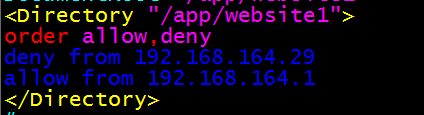 具体用法:下图中定义了order allow,deny先允许,后拒绝;根据法则后定义的生效