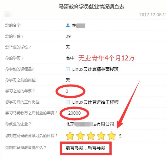 【学员喜讯-636期】高中无业青年29岁学Linux云计算4个月就业12万