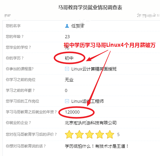 【学员信息】初中生学习马哥Linux4个月月薪过万