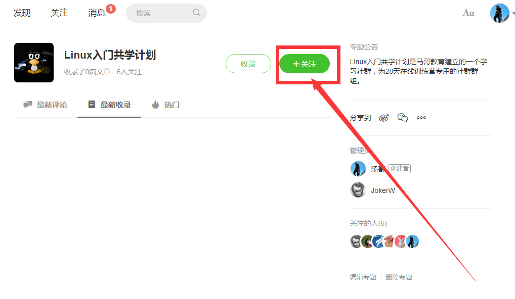 加入《Linux共学社群》的简书小组,链接:https://www.jianshu.com/c/4270ad244f46