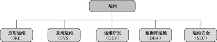 运维的工作方向比较多,随着业务规模的不断发展,越成熟的互联网公司,运维岗位会划分得越细。当前很多大型的互联网公司,在初创时期只有系统运维,随着 模、服务质量的 要求,也逐渐进行了工作细分。一般情况下运维团队的工作分类(见图1-1)和职责如下。