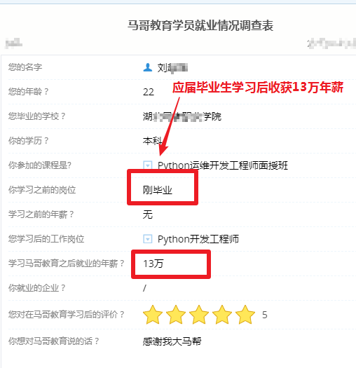 【学员信息】应届毕业生学习Python收获13万年薪