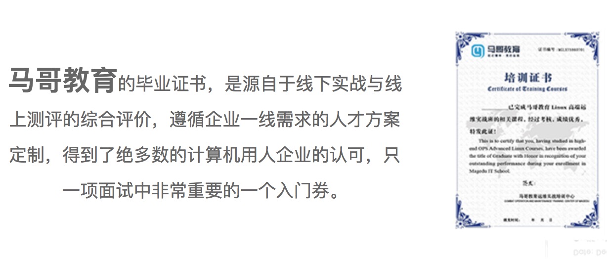 本次课程为国内顶级研发团队马哥教育历经10年精心打造,课程由马哥教育Linux大师马哥亲授,其学员遍布现学员已在腾讯、大众点评、巨人、盛大、九城、淘宝、快钱、一号店等知名互联网公司。