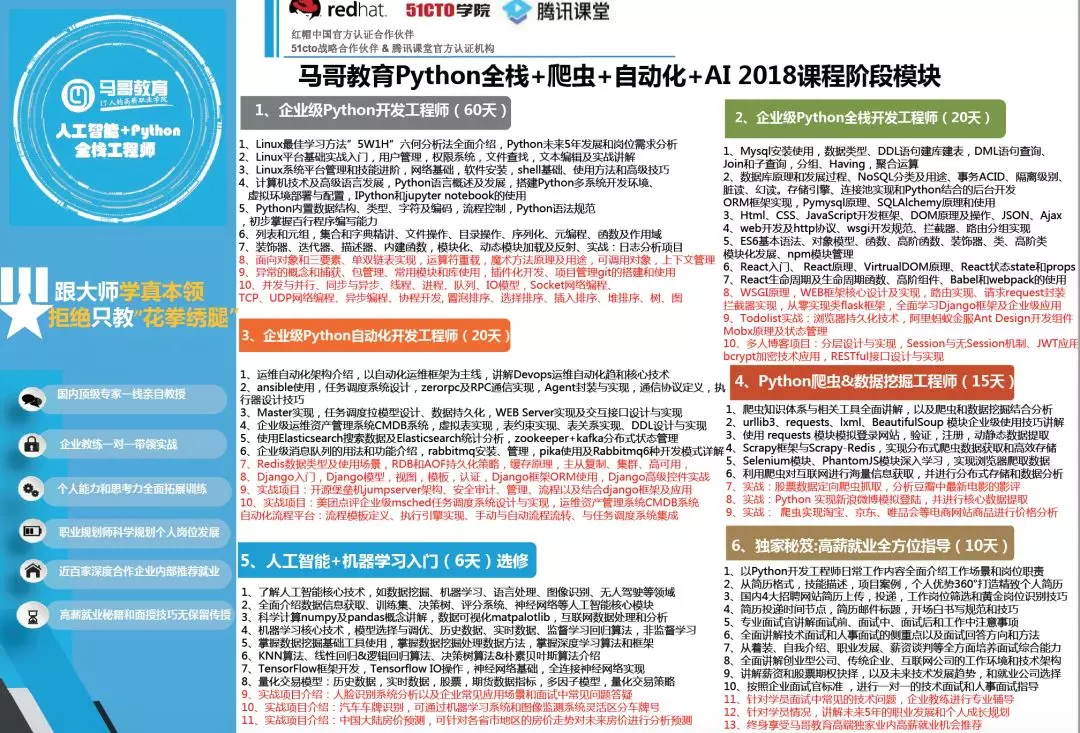 2019全新Python课程学习模块,完全紧贴用人单位真实技术需求,让你一次学习,终身受益,Python四大主流方向一网打尽。
