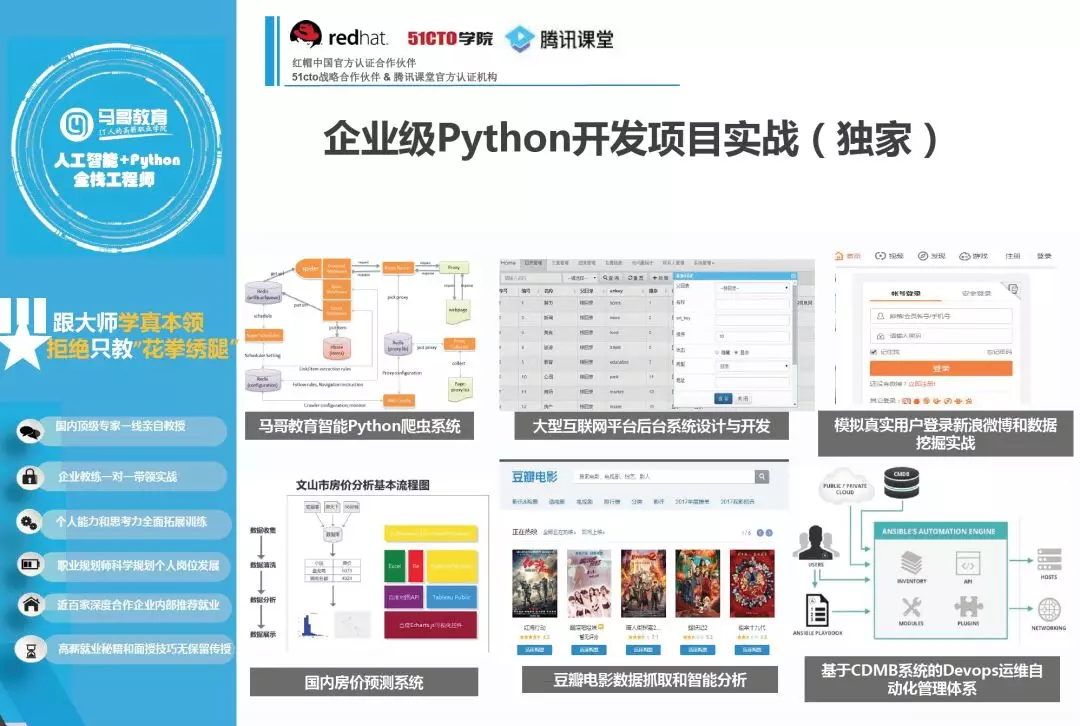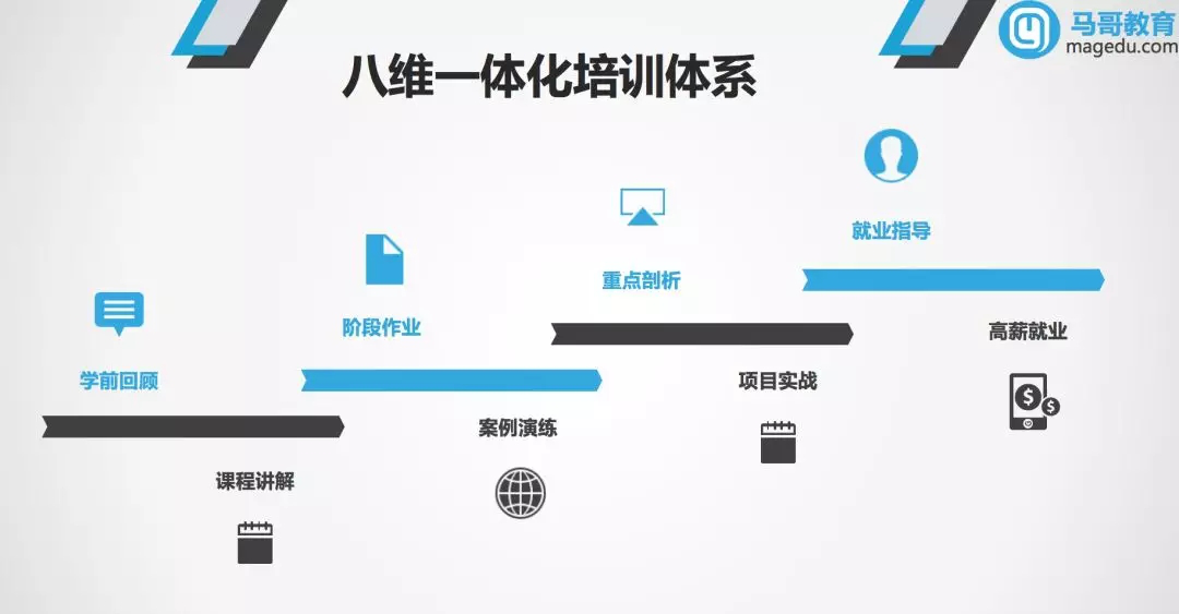 对于Python学习,相信很多朋友都尝试过,不少同学手中资料也有很多,硬盘存的资料也有几十G,但是没有良好的学习环境和正确的学习姿势,大多都半途而废了。主要原因是没找到一个良好的学习环境和氛围,和正确的学习路径,马哥教育教学团队投入大量精力,研发了全新的Python课程体系和八位一体化学习模式,真正做到让小白零基础,四个月成为Python顶级高手