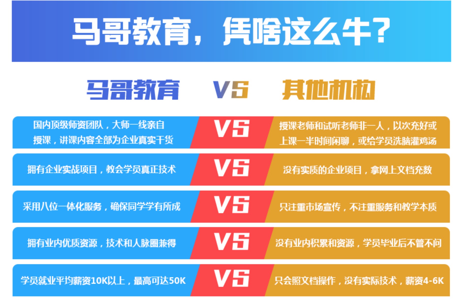 如果觉得自己学习Python不太好坚持,可以考虑加入马哥教育Python实战班,马哥教育职业IT培训的高品质和毕业学员的良好口碑,其已经成为业内知名互联网公司重要人才战略合作伙伴,获得了百度、腾讯、阿里、中兴、科大讯飞、大众点评、51CTO、唯品会、京东、中国移动、 新浪、红帽等互联网巨头的人才合作支持,2013年成为51CTO官方推荐合作机构,与多家IT互联网企业签订专项人才培养计划,毕业学员平均薪资达10K以上。