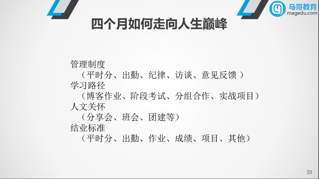 马哥教育人性化管理制度+学习路径+人文关怀+结业标准,四个月伴您走上人生巅峰!