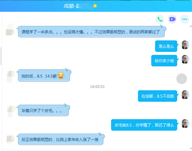 Python面授班课程刚过半,连续收到两份offer,薪资翻倍!每天这么多高薪就业的同学,足以证明我们课程的含金量!