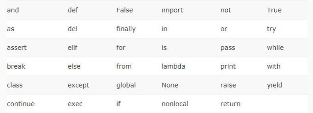 4. 关键字不能作为标识符。Python 有以下这些关键字: