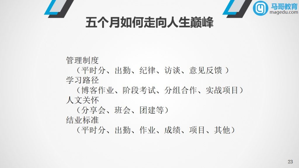 马哥教育人性化管理制度+学习路径+人文关怀+结业标准,五个月伴您走上人生巅峰!