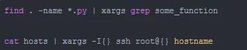o 使用xargs。这是一个很强大的命令。你可以使用-L来限定有多少个命令,也可以用-P来指定并行的进程数。如果你不知道你的命令会变成什么样,你可以使用xargs echo来看看会是什么样。当然,-I{}也很好用。示例: