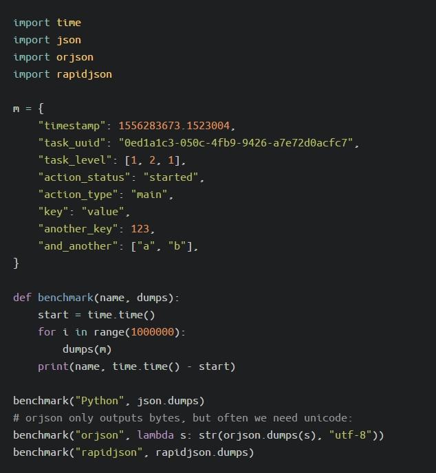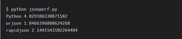 你应该使用orjson吗? 不一定。你可能有不同的要求,你的基准测试也可能不同——例如,你可能需要解码大型文件。