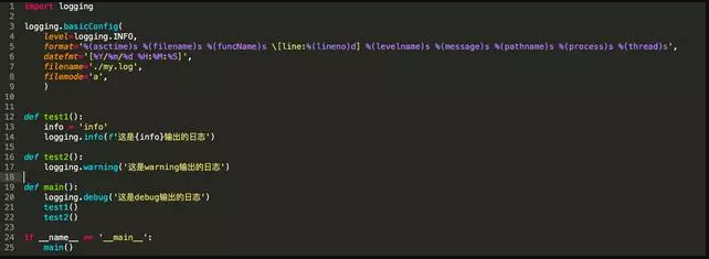 5. filemode:设置将日志写入文件的方式,'a'是追加到文件中,'w'是重写文件