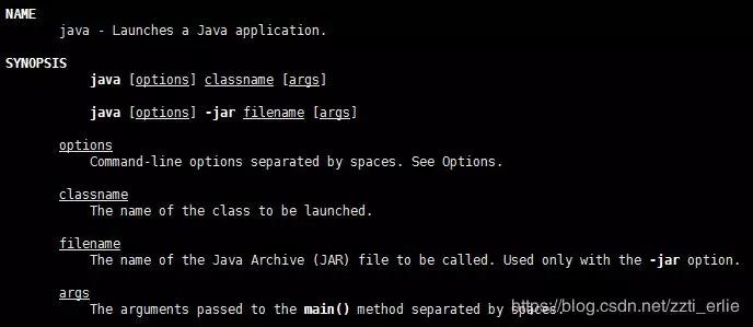 | OPTIONS | man命令最基本的部分,命令的各种选项,以及对选项的简要介绍 |