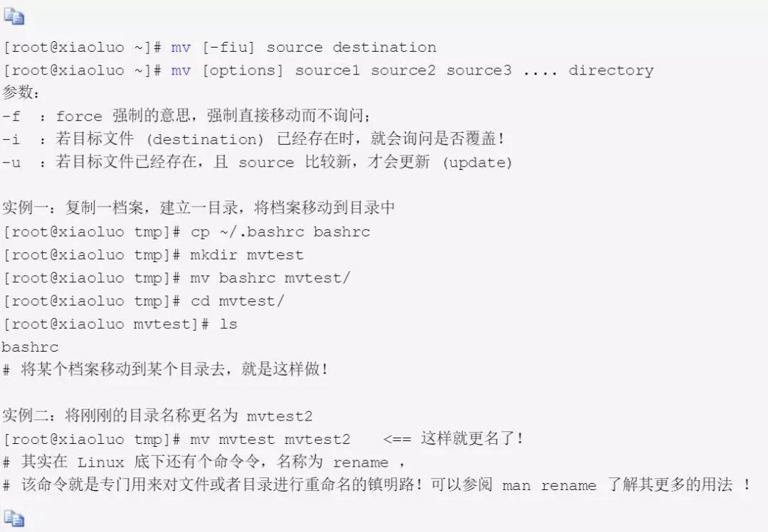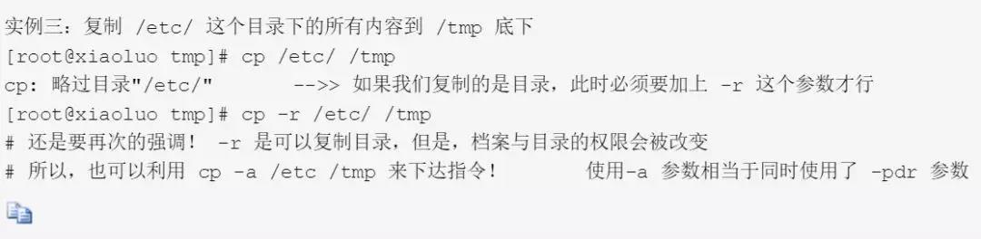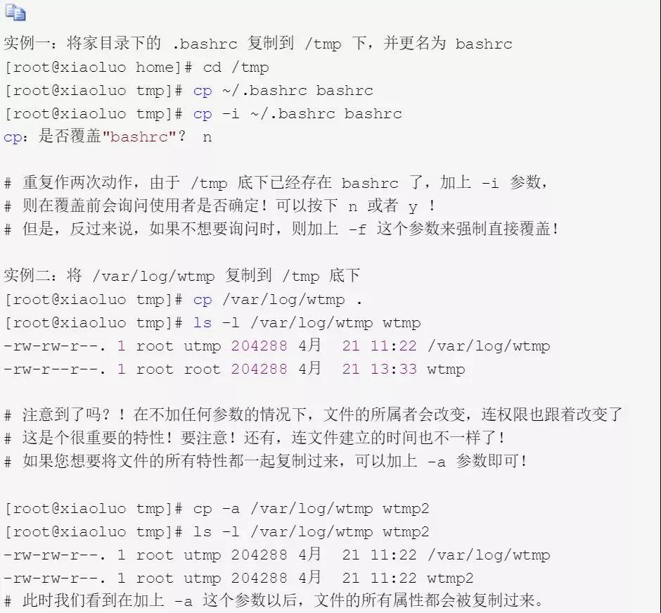 下面我们来写一些实例来看一下cp命令的常用用法: