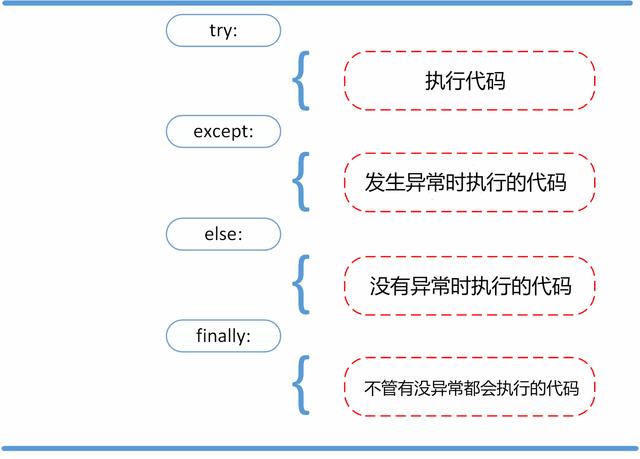 - 如果没有异常发生,忽略 except 子句,try 子句执行后结束。