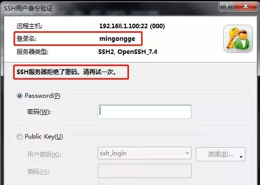 这时发现已经无法正常登录连接了,表明刚刚的配置是正确的。等到下次需要登录时,可以使用下面的命令进行解锁: