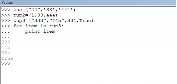 使用小括号构建元素。注意:元组可以将不同的数据类型整合到一起,比如下面的第三条数据中就是将字符、数字、布尔类型的数据放到一起。