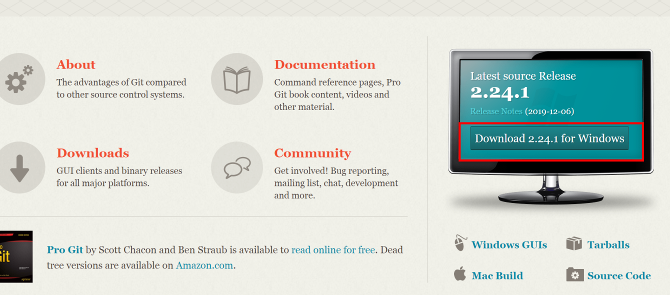 要下载 Git 的话直接打开 Git 的官网 下载最新的安装包即可: