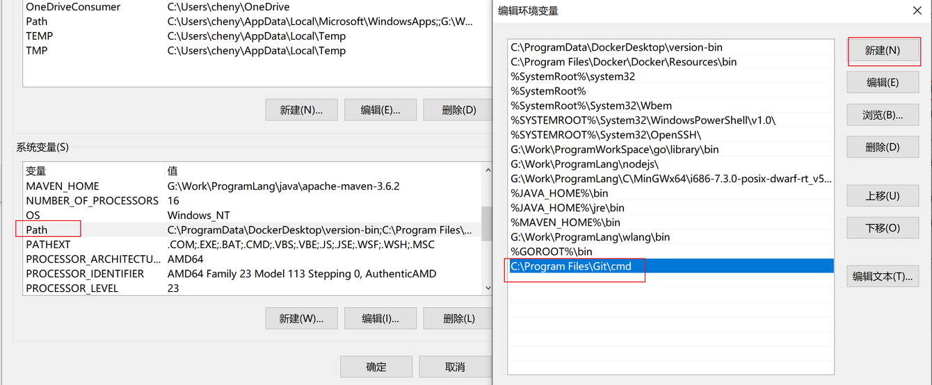 右击 此电脑->属性->高级系统设置->环境变量。选中 Path,然后点击下方的编辑,将 Git 的安装目录下的 cmd 写入环境变量中,Git 会默认安装在这个路径下面:C:Program FilesGitcmd。