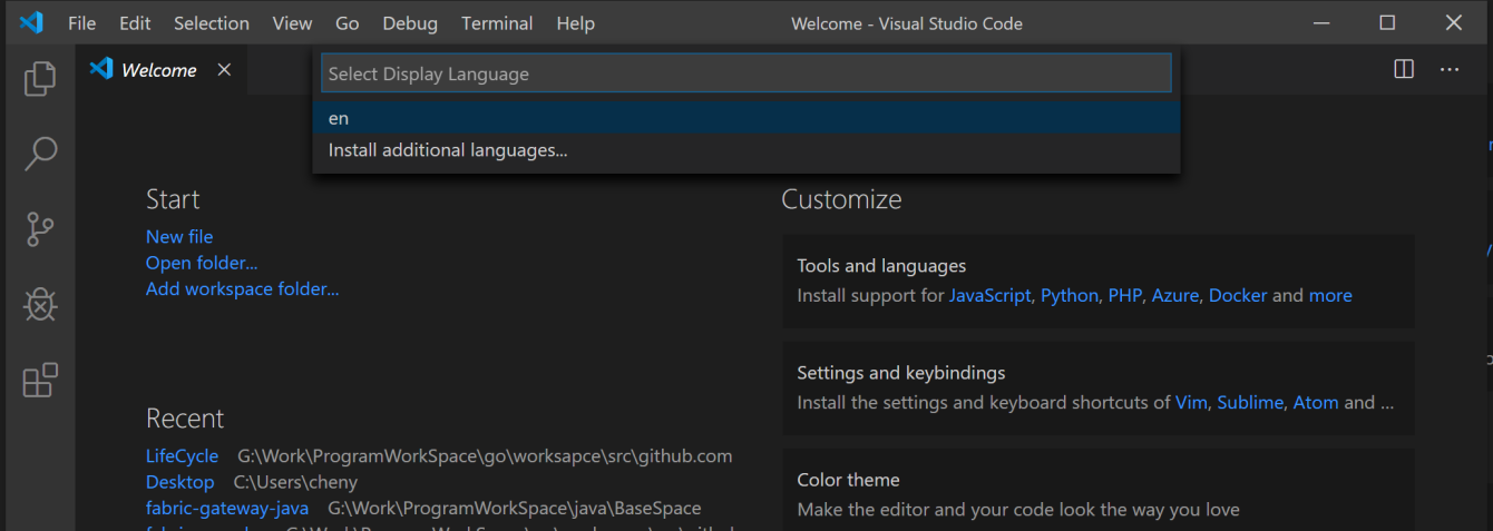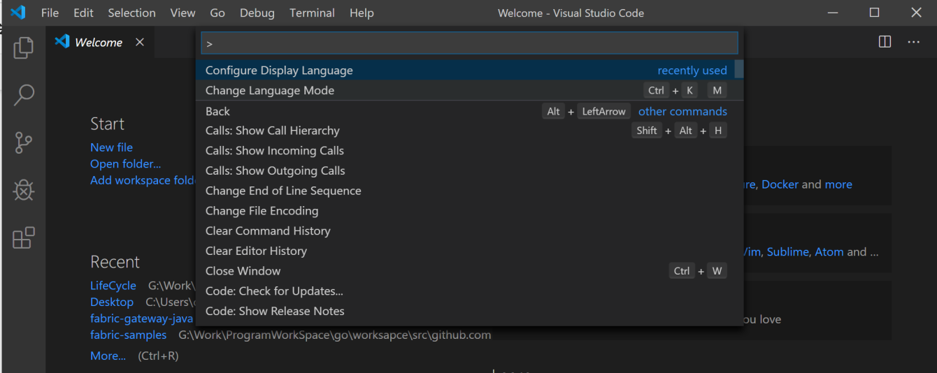 安装成功后,如果你的英文不是很好,也可以将 VSCode 配置为中文。打开 VSCode,使用快捷键Ctrl+Shift+P,打开命令快捷键: