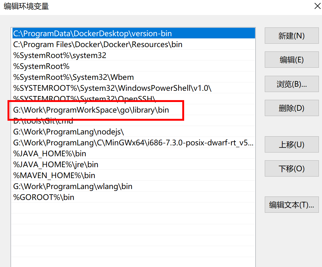 最后你可以看到 %GOAPTH%/bin 中已经把插件安装完毕。为了使其生效,还需要将这个文件夹配置进环境变量Path 中: