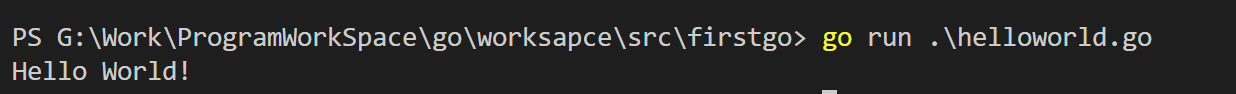 在终端中输入执行语句来执行 helloworld.go 文件 :