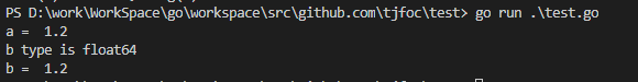 在 Go 语言中小数值类型取决于计算机操作系统的位数,我是使用的 64位 的计算机,所以使用:=时,会得到一个类型为 float64 的变量