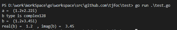 在 Go 语言中复数值类型取决于计算机操作系统的位数,我是使用的 64 位的计算机,所以使用:=时,会得到一个类型为 complex128 的变量