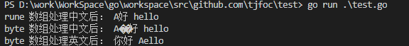 fmt.Println("byte 数组处理英文后:", str2) - 29