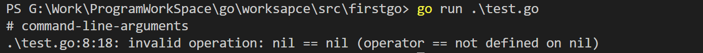 与其他语言不同,在 Go 语言中 nil 和 nil 之间是无法比较的。