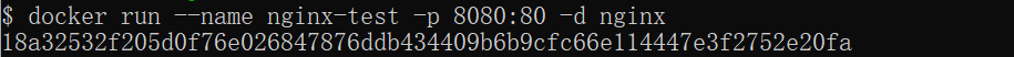 $ docker run --name nginx-test -p 8080:80 -d nginx