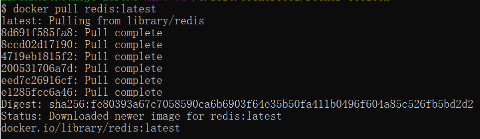 在上图中可以看到我们已经安装了最新版本(latest)的 redis 镜像。