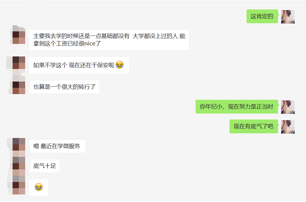 【学员喜讯-931期】零基础学生,转行前做保安,没有经验没有学历,入职6k,一年时间,薪资涨了25%现在可以不慌不忙,可以从容应对,只要你努力,就会有新希望